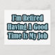 Cute, roligt citattextdesign i blått och svart som innehåller det humoristiska pension som säger att jag är trött, att ha Bra är mitt jobb.