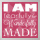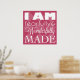 Ett prisvärt sätt att försköna ditt barnrum eller ditt barns sovrum eller badrumsväggar. Texten lyder, "Jag är underbart gjord". Se till att kolla in våra relaterade affischer för en perfekt matchande väggkonstuppsättning!