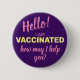 Jag är vaccinerad hur jag kan hjälpa dig att Lila. Tillbaka till affärerna? Det här är en uppdaterad version av en typisk "Hur kan jag hjälpa dig?"-knapp som inkluderar att du också vaccineras! Hjälp till att stoppa spridningen!