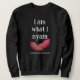 Roligt I ÄR JAG VAD I NYAM Kärlek Sweet Potato Par Unisex-sötskjorta, som visar två sötpotatis och fet vit är jag VAD I NYAM-typografi, med en anpassade som säger I KÄRLEK MY SWEET POTATO, som du kan ersätta med din egen text, eller ditt/dina namn. Den här sötpotatiskjortan skulle göra en underbar par sötare eller en gåva till jul, födelsedagar och årsdagar. Det är också idealiskt att uppmuntra till hälsosam mat på Thanksgiving Middag.