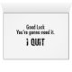 " Lycka till. Du går att behöva den. Jag avslutade" avslutat det skitdåliga jobb med någon stil!