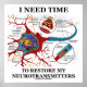 Visa din sinnesneurologiska inställning med denna anatomiska, biologiska poster med alla nyckel-delar av neuron/synapse tillsammans med följande ordspråk för alla trötta nu och sedan: "Jag behöver tid för att återställa mina neurotransmittorer". Den Underbara inställningen poster gåva till alla som då och då måste återhämta sig!