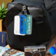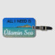Detta bagagemärke är perfekt för varje havsberoende. Den har bild i det ultratransparenta kristallina vattenen av nödhavet på Sardinien (Italien) med alla dess blå nyanser, en solig sommardag med ett tydligt blå himmel och en liten islet i avstånd. I typsnitt, svart på vitt, står det att jag behöver vitaminhavet.