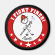 Brandmansskjortor, hoar, sweatshirts, mugg, vapen och andra brandkampor, pappra produkter och gåvor i olika stilar och färg med en röd cirkelformad utformning av stick figur basbrandbekämpare och text med texten "I Fight Fires!".