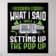 Campingdesignen. Den här roliga campingdesignen är ledsen för vad jag sa när du satte upp popup och är en underbar campingkamper älskare som säger presentidé. Underbar för alla som kärlek att resa på sitt eget fyra hjul över hela världen och utforska vackra utomhus ställe och land medan sitta på kvällen med vänner runt campingelden.