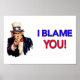Ett retroaktivt Världskrig II poster omarbetat för den moderna tidsåldern. Farbror Sam pekar på sin finger för att säga att jag klandrar dig! Vintage charm, och lite humor för oss som alltid tycks vara i knipa.
