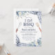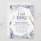 Inbjudan gäster till ett blått tema Jag duschar eller avslappnad repetitionsmiddag för att fira paret lycklig! Den här inbjudan innehåller dammiga blommigtar med blå vattenfärg med accenter från marinerad gingham mot en vit tvättat lingbräda.