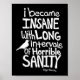 Edgar Allan Poe var 1800-talets amerikanska författare och poet-berömd för sina skräckhistorier och makaber. Citatet i denna Poster, "Jag blev galen med långa intervaller av fasansfull sanitet", sades vara skrivet av Poe i ett brev som beskrev hans sinnestillstånd på grund av hans kära frus död. Typografi och design © Copyright-flikar