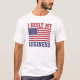 " Byggde jag t-skjortan för min affär som" designen presenterar amerikanska flaggan och texten i färgerna "röd old glory", och "old gloryblått" - officiellfärgerna som användes i USA flaggan. Alla textinslag är anpassadepå-sidan.