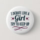 Jag debatterar som en flicka försöker Behålla upp Knapp