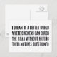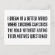 Jag drömmer om en bättre värld där kycklingar kan kor på vägen utan att deras motiv ifrågasätts.