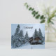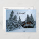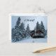 Anpassa vykortet. Ändra texten, färg eller lägg till ditt eget meddelande! En stuga i snö, omgiven av ett högt gräs-träd. Fotografi av Minerva Bloom.