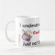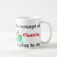 Denna mugg har en ösregna och en mop på den förutom en kruka som verkar att laga mat. Texten läser: "Förstår jag begreppet av matlagning och lokalvård. Precis inte som det applicerar till mig". Denna design gör en idealgåva för den inhemska gudinna i ditt liv!