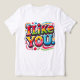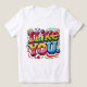 T-shirt-designen "Jag gillar dig" har en lekfull, handritad typografi med en roligt, vänlig vib. Texten är placerad i en avslappnad som flyter stil, där man använder djärvt, dynamiskt färg som fångar öga. I närheten av ord kan munkavle som hjärtan, stjärnor eller smiley face spridas, vilket ger konstruktionen en positiv och positiv energi. Den allmänna känslan är lätt och väcker, skapar den perfekt för att uttrycka kärlek på ett sött, snyggt sätt.