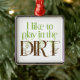 Denna charmig metall inramade prydnad är en underbar gåva för någon, som älskar att arbeta i trädgården, och skulle look utmärkt på en trädgårdsmästare julgran. Designen läser, "mig gillar för att leka i smutsen" i en elegant stilsort med vinebrytningar. Kommer med kedjar.