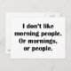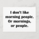 Jag gillar inte morgonfolk. Eller moraliseringar, Vykort