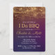 Inställd mot den djupa, vackra skugga av lila i skymningen och med en sträng av guld som skakar ljus och den blekna glitter, anger den här förlovningsfestens inbjudan tonen för en enkel men ändå elegant I Do BBQ. Händelsen kan enkelt ändras för en Möhippa eller Möhippa. Det fungerar också som en repetitionsmiddagsinbjudan.