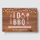 Denna Jag gör BBQ rustika röda bruna design har en rustik trädgård bakgrund med strängljus och grill grafik. Denna design är perfekt för en förlovningsfest och par bröllopsfest grillfest.