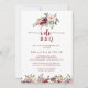 Denna "Jag gör" BBQ rustic sommar blomsterfästning fest inbjudan är perfekt för en modern fästningsfest, provsmakning middag, par duscha, after party eller någon bröllopshändelse. Designen har burgunder, rosa och rodnad akvarell blommor med gröna blad i en brunaktig bakgrund.