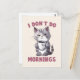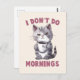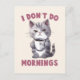 Börja din dag med en liten bit humor och kattdjur charm med det här vykortet "Jag gör inte morningar"! Med en sömnig grått-katt som håller kopp i kaffe är detta vackra konstverk perfekt för både kattälskare och kaffeentusiaster. Den här designen är en underbar gåva till alla som inte är morgonmänniska, och den tillför en lekfull fläck till din vardag.