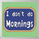 Schemalägg mig inte för nåt före 10.00 om du inte vill se mig uppriktig. Att stanna upp är lättare än att stiga upp.