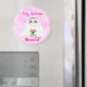 Perfekt för kattälskaren som nyligen också har blivit förlovad, denna magnet visar en leende katt som bär en slöja med en blomsterkrans. Hon låter världen veta att hon håller på att bli meowied.