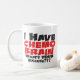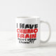 Dold black and red text: "Jag har Chemo Brain; What's Your Ursäkta?", perfekt för alla som kämpar mot någon typ av cancer med kemoterapibehandlingar.