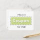 Grönt och svart kupong med det roliga uttrycket att jag har en kupong för det! En underbar gåva till de kupongskurkar i ditt liv som gillar att spara pengar genom att skära av kuponger för att handla i livsmedel.