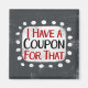 "Jag har en kupong för det" är en söt textdesign i grått med svart och röd text, tillsammans med en vit accentform och vita texturerade vita prickar runt den.