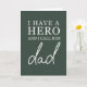 Skogens grönt med "Jag har en hjälte och kallar honom pappa" i vitt. På grund av skillnader i inställningar för bildskärmar och d-enhet kan tryckt färg variera något från det du ser på skärm. Tack för att du besökte Walt & Ellie
