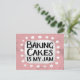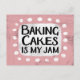 "Baking Cakes Is My Sylt" är en söt textdesign i rosa med svart text, tillsammans med en vit accent-form och vita texturerade visuella punkter som omger den.