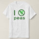 Jag hatar ärter. Designen använder gröna bokstäver, ett grönt hjärta och den internationella "NEJ"-symbolen för att uttrycka "Jag hatar ärter". För de som inte "älskar" dem, verkligen ogillar dem, men har en humor och älskar att skratta och bli retade.