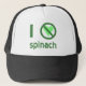 Jag hatar spenat. Designen använder gröna bokstäver, ett grönt hjärta och den internationella "NEJ"-symbolen för att läsa "Jag hatar spenat". För de som inte "älskar" det, verkligen ogillar det, men har en humor, älskar att skratta och har sin funny bone kittlad.