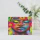 Skicka en stänk av färg och kreativitet med detta pulserande vykort med en abstrakt som skildrar en afrikansk kvinna på ett dynamiskt pop-stil. Det djärva färg och de invecklade blommönstren gör denna utformning verkligt unik. Perfekt för att dela ett speciellt budskap eller som ett kollektivt biet är det här vykortet som säkert kommer att glädja och inspirera alla som tar emot det.