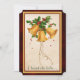 Framsidan av detta moderna platta Julhälsningar kort har ett vintage bild på tre guld klockor som är sammanbundet och dekorerat med grönt holly löv och röda bär. I grund står det: "Jag hörde klockor.. "Bilden gränsar till mörk rött med guld och rött ram. Baksidan av kortet har ord till det underbara dikt av Henry Wadsworth Longmedarbetare, och plats för ditt personliga budskap och namnteckning.