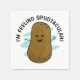Cute, roligt potatispun... Jag känner dig pudtaculär i böjd svart text överst på designen. Nedan finns en lycklig brun potatis med pinnar för arm och små svarta prickar för öga och ett stort lycklig leende.