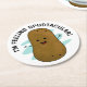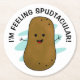 Cute, roligt potatispun... Jag känner dig pudtaculär i böjd svart text överst på designen. Nedan finns en lycklig brun potatis med pinnar för arm och små svarta prickar för öga och ett stort lycklig leende.