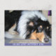 POSTKORT. SAKNAR DIG.. ÖNSKAR DU VAR HÄR. TRI-FÄRGAD RÖLIGHÅRIG COLLIE I EN SORGSEDD FÖRESTÄLLNING.