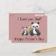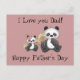 En pandabjörn i far är sitta med sin dotter när hon ge blommor till Fars dag i år. Detta vykort är helt och hållet anpassade på båda sidor. Välj färg för favoritbakgrund, ändra texten och färg också. Gör ett underbart kort för alla tillfällen.