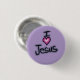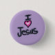 Jag Kärlek Jesus, jag hatar Jesus lila Button. Berätta för dem hur du känner för Jesus! Handskriven svart text med ett starkt rosa hjärta. Anpassa färg i bakgrunden med redigeringsdesignen verktyg. Njut!