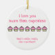 NewParkLane - Lunt Ornament, med en söt rosa cupkaka, och citera "I kärlek you more than muffinss!" (och i verkligen, verkligen like muffinss) i roligt shock rosa typografi.