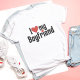Uttryck kärlek med den här garantin, med frasen "Jag ❤️ min Boyvän" med ett pulserande rött hjärta som ersätter ord "kärlek". Den här söta och trendig Valentindagskjortan är ett perfekt sätt att visa din kärlek till din pojkvän. Ge henne eller bäran det stolta över att fira kärlek.