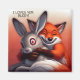 En räv kramar en kanin. Kaninen störs helt naturligt.