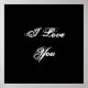 En svart och vit design som säger "I Kärlek You" i ett skript.
