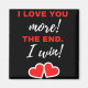 Jag Kärlekar dig mer! Slutet. Jag Win! Det här är ett roligt citat från kort som är underbart som Valentindagspresent till flickvän, pojkvän, honom, henne, par, make eller hustru. Lämplig som allmän gåva från Kärlek till årsdag, födelsedag eller jul