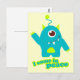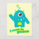 Sött grafiskt utomjordiskt vykort Jag kommer i fred av Sarah Trett. Perfekt för att varna för att du besöker men i fred förstås.