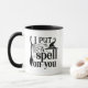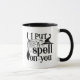 Den här klassiska Halloween-designen innehåller den smekande frasen "Jag lägger en spell på dig" i ett fet, gotskt-inspirerat teckensnitt. Systemet med svartvit färg förbättrar den ärliga atmosfären, skapar perfekten för Halloween-säsongen. Texten som medföljer är konisk häxaktig inslag, inklusive en spetsig häxhatt, en pjäs, ett spindelnät och en liten spindel, som alla är arrangerade för att skapa en förhäxningssammansättning. Den subtila detaljeringen av punkter runt texten tillför en aning magisk charm.