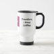 Ett modernt, djupgående kaffemärke, som ångar kopp i hett kaffe, några lösa kaffebönor bredvid det. En roligt lärare säger: "Jag undervisar därför, jag behöver kaffe."
