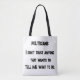 Jag litar inte på att det är en Tote Bag som du kan berätta för världen om vem du inte litar på. Politikar, vänner, officieller eller vem som helst. Du behöver inte nödvändigtvis elak det, men kanske bara du. Vem vet? Endast du:0)
