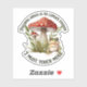 En vattenfärgad illustration av en groda och svampar med texten "Det räcker inte längre att röra gräs. Jag måste röra moss."